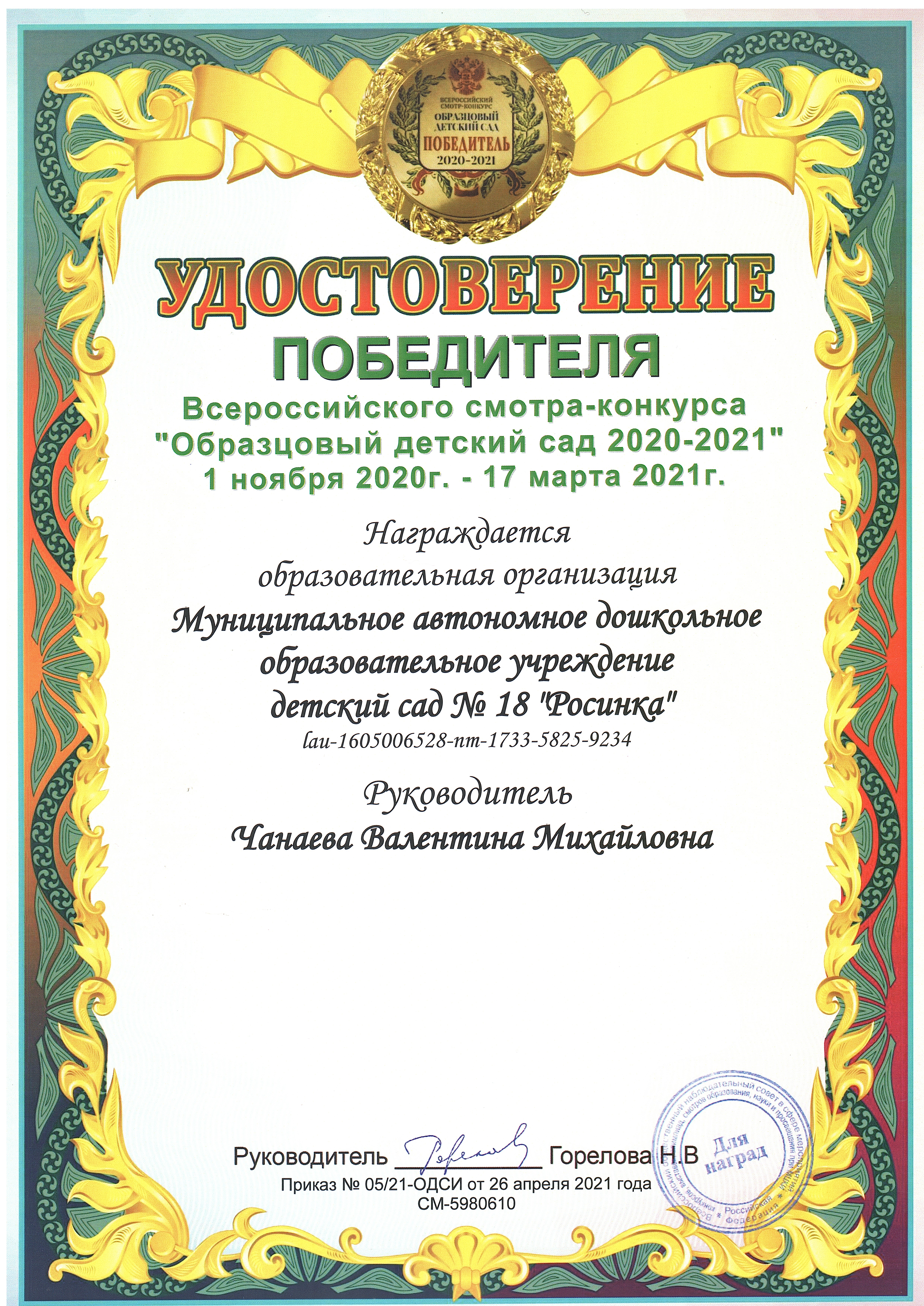 Поздравляем весь коллектив МАДОУ детского сада № 18 "Росинку" за победу во Всероссийском смотре - конкурсе "Образцовый детский сад 2020-2021"